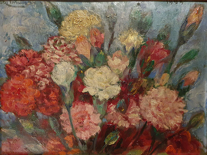 NATURE MORTE VERTE - FLEURS JARDIN DU LUXEMBOURG, 2004, huile sur toile, 16 x 22 cm